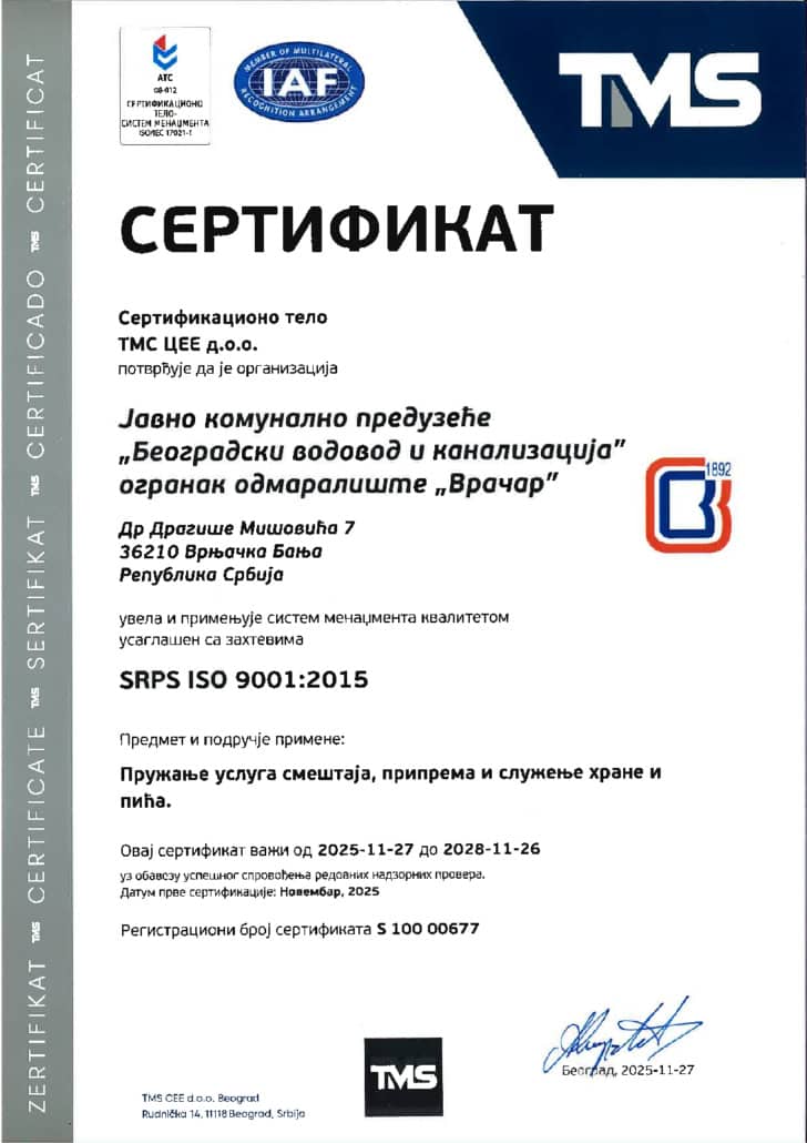 Beogradski vodovod i kanalizacija Vrnjačka Banja ISO 9001_dec_2025