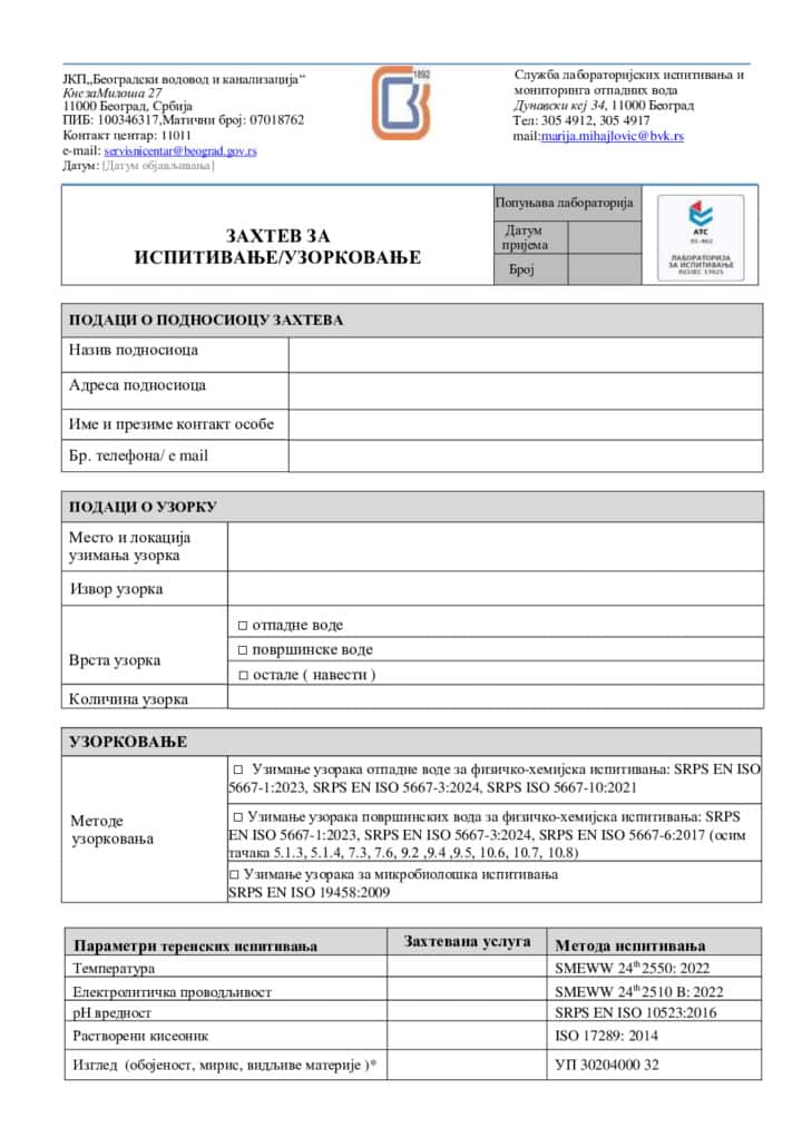 Zahtev za ispitivanje i uzorkovanje-mart-2026 2. март 2026. https://www.bvk.rs/wp-content/themes/enfold-child/assets/logo-cir.png 0 0 JKP BVK https://www.bvk.rs/wp-content/themes/enfold-child/assets/logo-cir.png JKP BVK2026-03-02 14:27:172026-03-02 14:27:17Zahtev za ispitivanje i uzorkovanje-mart-2026
